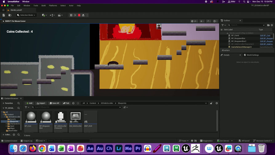 This project focuses on creating a simple yet engaging 2D platformer using a combination of Photoshop and Unreal. The project will involve conceptualizing the game, designing environment assets, character animations, building a level in Unreal, and concluding with a gameplay recording. Players will be able to run, jump, and collect coins.
